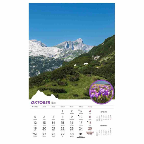 Koledar Slovenske gore in cvetje 2026 – stenski koledar