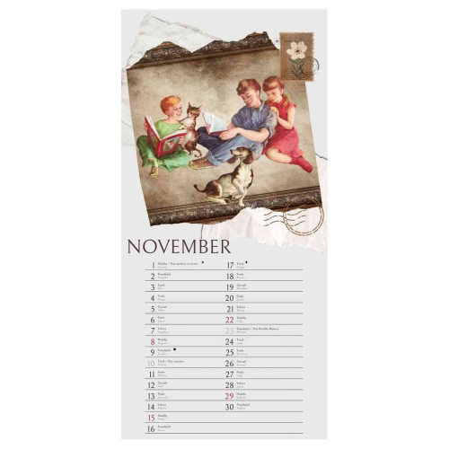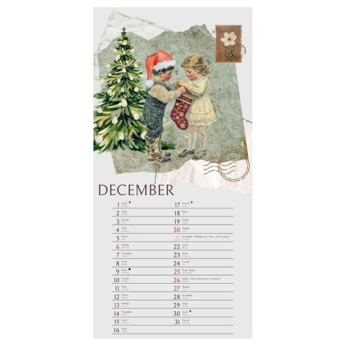 Doživite pridih preteklosti s stenskim koledarjem Stare razglednice 2026, ki vas popelje skozi nostalgične prizore slovenskih krajev, ujetih na zgodovinskih razglednicah. Koledar vsebuje slovenska imena in je odlična izbira za ljubitelje zgodovine, tradicije in retro estetike.