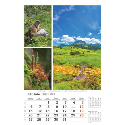 Navdihujoč stenski koledar LEPOTE GORA 2026 vas bo skozi vse leto spominjal na lepoto narave in mir, ki ga ponujajo slovenske gore.