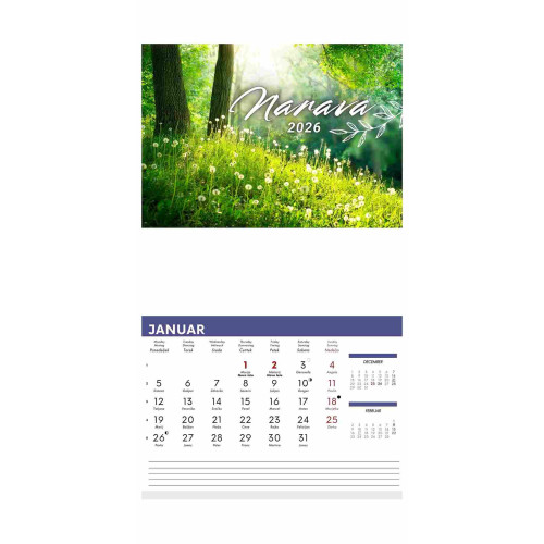 Popestrite svoj dom ali pisarno s stenskim koledarjem Narava 2026, ki vas skozi leto spremlja z umirjenimi in navdihujočimi motivi naravnih lepot. Koledar vsebuje slovenska imena in ponuja prijetno, svežo estetsko izkušnjo.