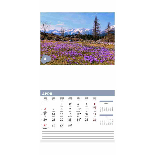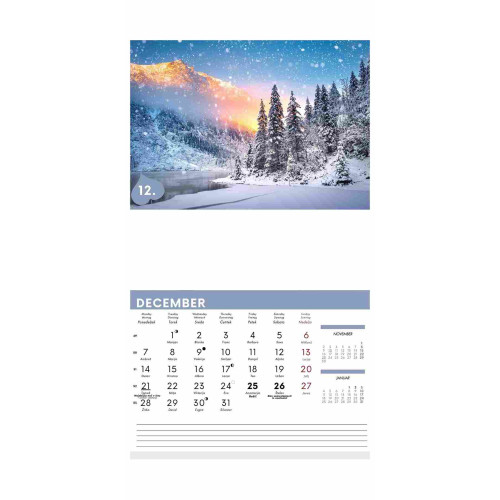 Koledar Slovenija 2026 – stenski koledar Odkrijte lepote naše dežele z elegantnim stenskim koleda..