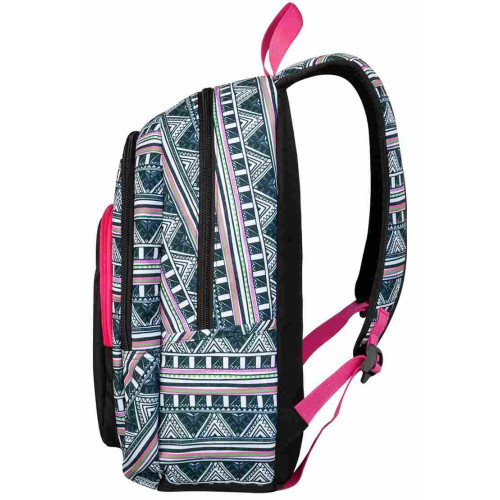 Za udobje pri nošenju skrbijo široke, mehko oblazinjene naramnice in anatomsko oblikovan hrbtni del, ki omogoča prijetno prileganje.