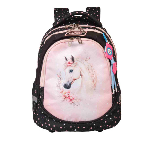 ⭐ Čudovit nahrbtnik z motivom belega konja in nežnih cvetličnih detajlov, ki navdušuje vse ljubiteljice konjev.