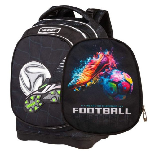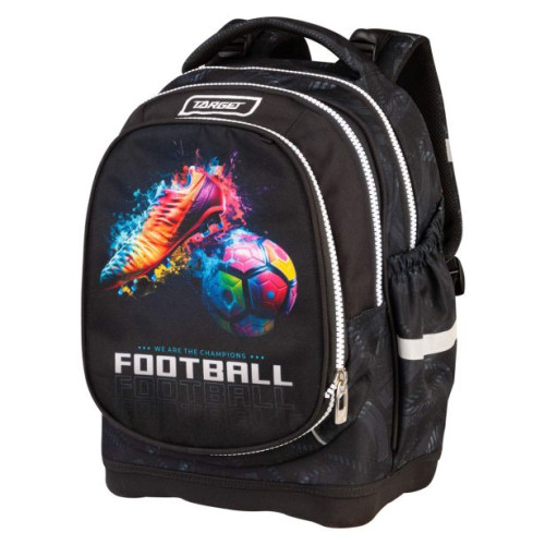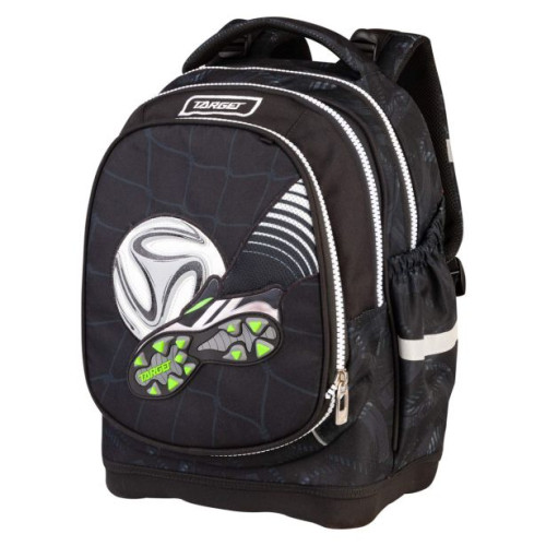 Šolski nahrbtnik z dvema glavnima predeloma in dodatnim žepom za manjše predmete ali copate. Na st..