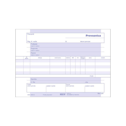 Praktičen samokopirni blok, namenjen vsem prevoznikom za enostavno količinsko in vrednostno evidentiranje blaga.