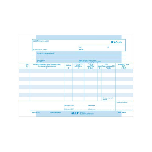 Račun 5.30 (za ročno pisanje – ležeč) – samokopirni