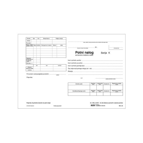 Potni nalog za tovorno motorno vozilo (4,9)