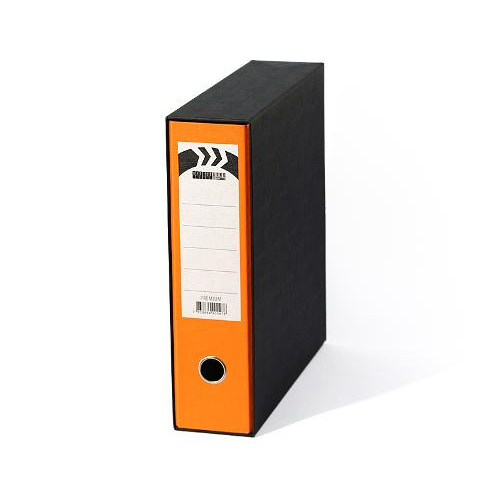 Registrator z zaščitno škatlo v črni barvi iz kartonske lepenke. Za liste formata A4 Širina 80 m..