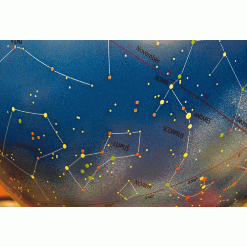 Ozvezdja so označena z znanstvenimi in astrološkimi imeni.