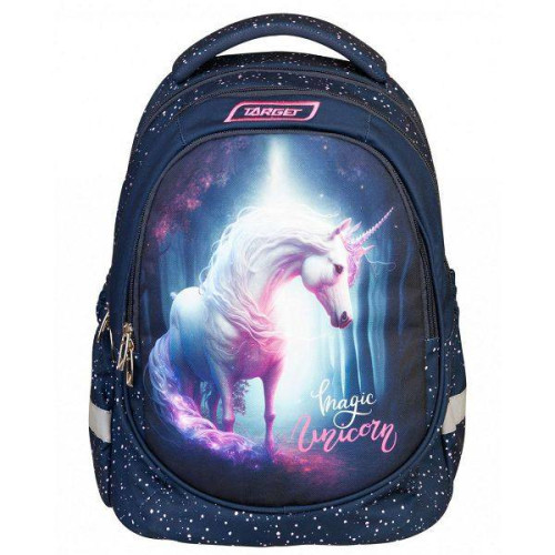 Nahrbtnik Target Superlight Petit, model Soft Magic Unicorn s trdim dnom je ergonomsko oblikovan za zagotavljanje optimalnega pretoka zraka. Odlikujejo ga anatomsko oblikovani široki ramenski trakovi, nastavitveni trakovi za prilagajanje, ter močno odsevni varnostni elementi za boljšo vidljivost. Izdelan je iz vodoodbojnega materiala, v notranjosti pa se ponaša z velikimi predelki za knjige ter stranskimi žepki za steklenice.