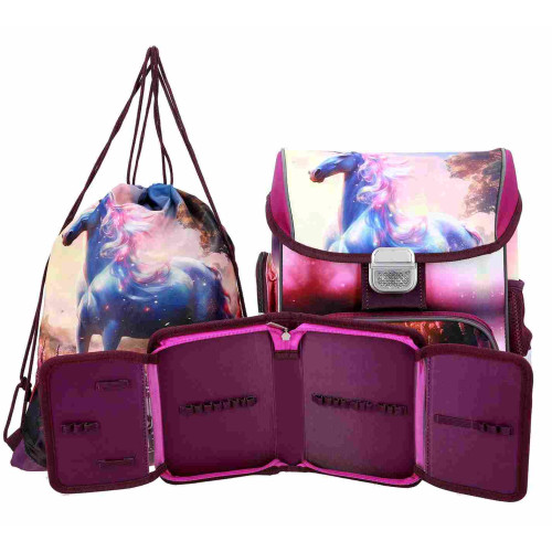 Znamka: ABC123 Material: poliester Set vsebuje: šolsko torbo, prazno enojno peresnico in vrečko ..