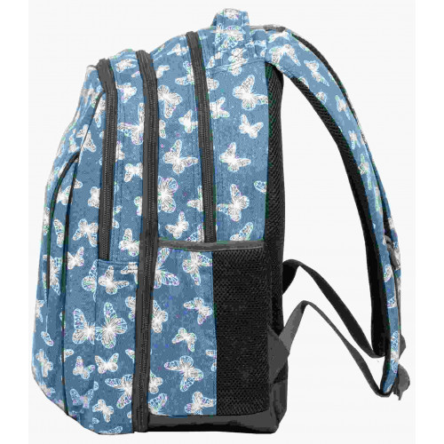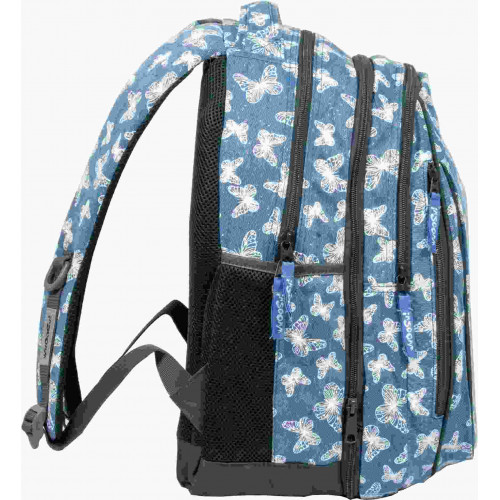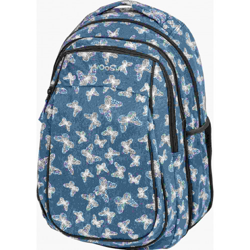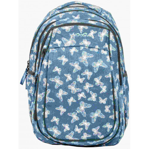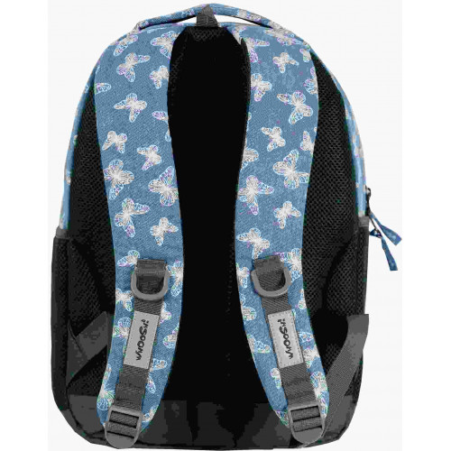 Šolski nahrbtnik z dvema glavnima predeloma in dodatnim žepom za manjše predmete ali copate. Na st..